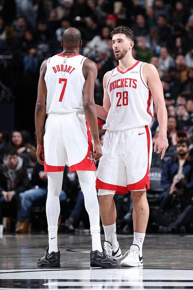 杜兰特的话没什么可说的,作为球队的核心,老杜在本场比赛中遭遇了篮网的严密包夹,尤其在末节,对手几乎不给他任何出手空间,但在火箭需要分数的时候,杜兰特还是连拿8分终结悬念。包夹杜兰特其实是火箭最不畏惧的局面,因为一旦杜兰特被限制,其他球员完全有能力接管球权,推动球队运转。而阿门汤普森在这场比赛中也堪称神勇,他命中了两记三分球,吃了一顿饺子,球迷也没料到。这也是阿门开局以来最出色的一场比赛。阿门的爆发不仅提升了球队的外线威胁,还在防守端带来了巨大的能量。他的全面性和运动能力,让火箭的进攻更具流畅性。