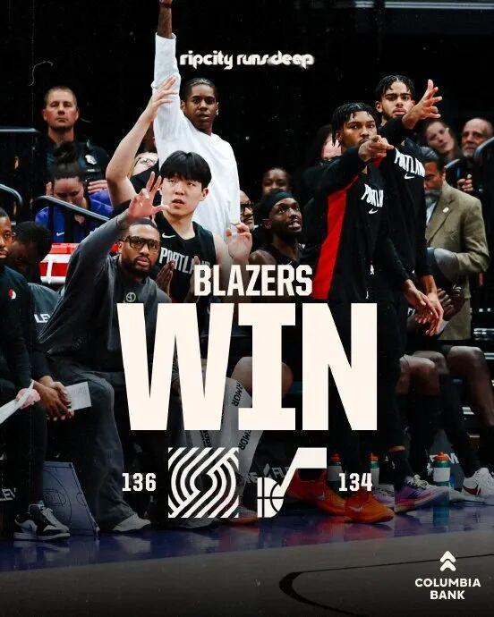 杨瀚森2分钟4分 开拓者轻取爵士