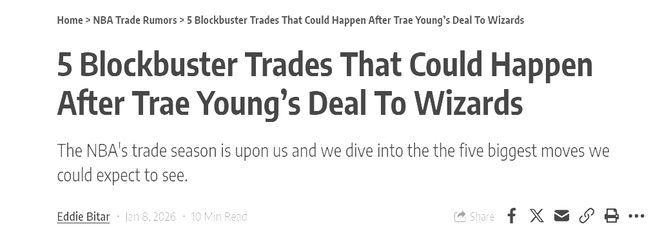 特雷·杨的交易已为联盟敲响了重磅交易的号角,在剩余的一个月时间里,各支球队的运作将愈发频繁。这5笔潜在的交易每一笔的达成都将重塑联盟的竞争格局。而NBA球星的流动与阵容的调整,正是联盟保持活力的关键所在。无论最终这些交易能否落地,本赛季的交易截止日都注定将充满悬念与惊喜。