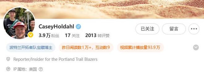 值得一提的是,Holdahl在微博也开通了自己的账号,他的头像正是他和杨瀚森以及翻译Chris的合影。