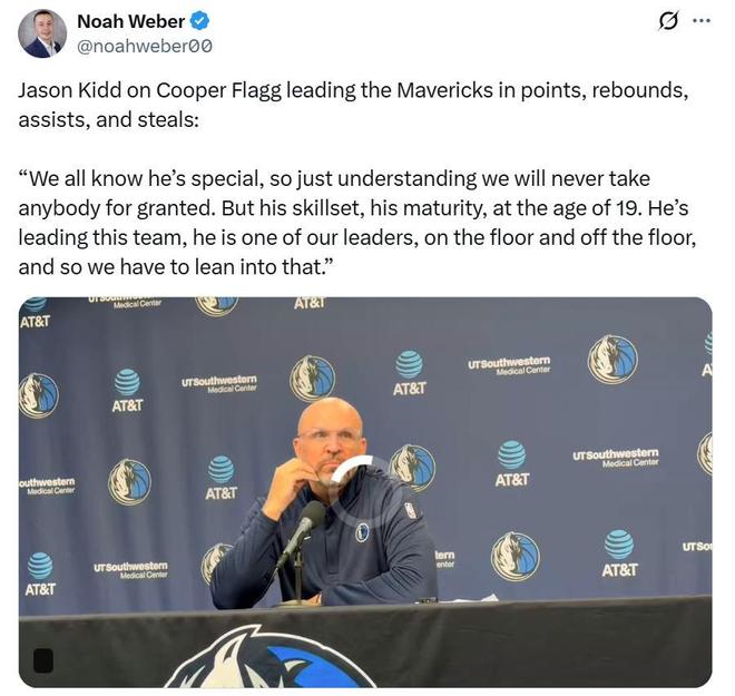 主帅基德也对弗拉格本场的表现大加赞赏:“所有人都知道他的与众不同,但你不能将之视作理所应当,尤其是他才19岁,无论是场上,还是场下,他都已经成为球队领袖之一。”