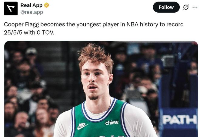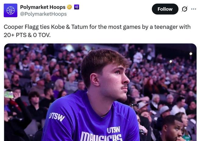 这是弗拉格本赛季第5次单场拿到20+得分且0失误,成功追平科比和塔图姆共同保持的青少年球员(13-19岁)纪录。