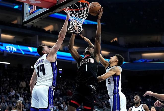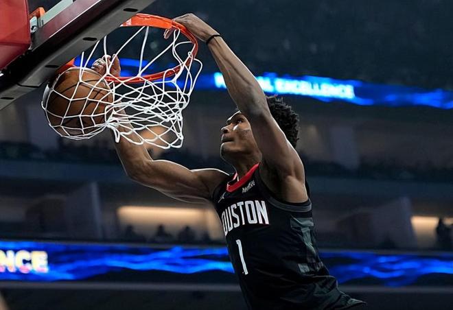 本场比赛中,火箭虽然输掉了比赛,但是球队的先发控卫阿门-汤普森(Amen Thompson)的表现算得上是令人刮目相看。阿门全场出场41分13秒,投篮17中11,三分线外1中0,罚球12中9,得到了全场最高分31分外加13篮板6助攻的数据,其中还包括了6个前场篮板,还有5次失误和2次犯规,正负值为-13。阿门在进攻端不断通过突破和内线冲击给对手制造威胁,他的篮下得分能力和终结能力非常出色,他在前场篮板争抢方面的表现也算得上是可圈可点,对手确实是很难对他的强攻进行限制,他也是得到了大量的分数。不过问题就在于,阿门出现了大量的失误,他在传球和组织方面的能力也是非常有限的,他能够靠着个人能力完成得分,但是他根本没有能力有效串联起球队的进攻,他在场上时球队的局面显然也是令人非常失望的。虽然数据出色,但是实际上他并不能帮助球队走向胜利。