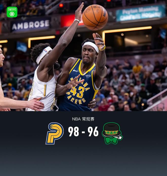 第四节步行者西亚卡姆拿下6分,凯尔特人德里克-怀特拿下5分,最终步行者98-96战胜凯尔特人