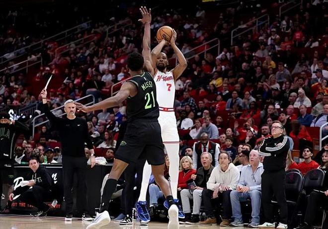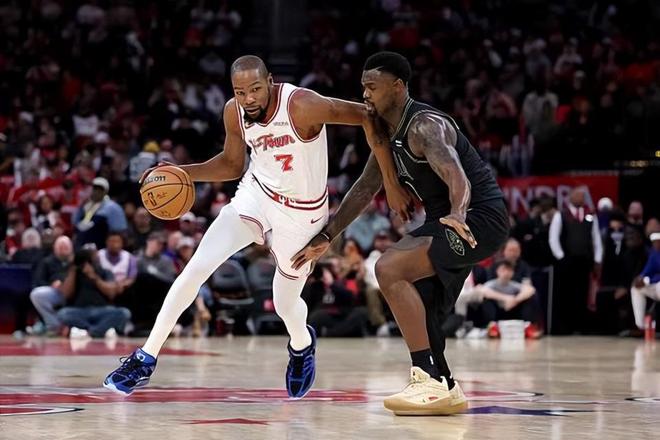 本场比赛中,虽然火箭取得了比赛的胜利,但是球队的先发锋线球星凯文-杜兰特(Kevin Durant)的表现显然是很不理想的水平。杜兰特全场出场36分04秒,投篮18中5,三分线外8中1,罚球8中7,得到了18分6篮板8助攻1抢断的数据,还有3次失误和1次犯规,正负值为+3。杜兰特在本场比赛中的表现令人大跌眼镜,他的进攻效率一塌糊涂,他的得分能力完全没有发挥出来,他在进攻端的才能也没有体现出来,他在外线投篮方面也是不断打铁。除此之外,杜兰特也不是一个可靠的防守者,他也没有办法在防守端起到更大的作用。总体来看,杜兰特在本场比赛中的表现并不理想,并没有展现出足够的竞争力,然而即使是在这种情况下,杜兰特还是得到了大量的出场时间,看起来球队教练组对于他依然是非常信任的。