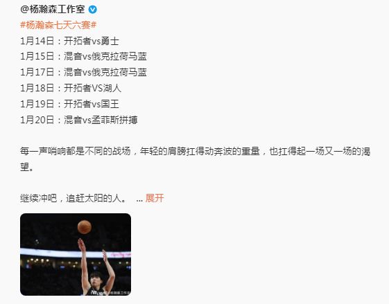 官方工作室赞杨瀚森:7天6战是追赶太阳的人拓媒指出3大短板