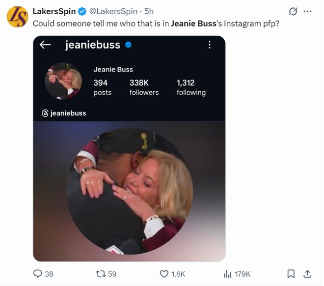 随后珍妮-巴斯还将IG的头像改成了与勒布朗拥抱,那是2020年夺冠后巴斯最开心的时刻。