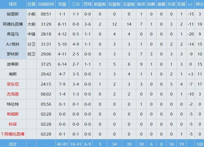 本场比赛,字母哥作为雄鹿唯一的优势点,竟然只有11次出手命中8球,高效空砍19分14板7助,库兹马和波蒂斯的出手次数都比他多。