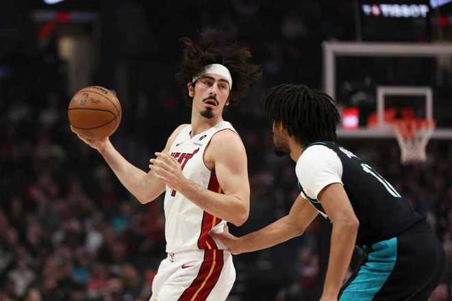 次节比赛,热火连续两节得分30+,开拓者被限制比首节少得到12分。开拓者扩大43-35领先优势,热火反扑追到差3分,开拓者一波7-0攻势扩大53-43领先。热火连追4分,乐福继续三分命中维持59-49领先优势,热火打出一波14-5攻势追分,开拓者单节26-32被追回6分,上半场结束开拓者仅64-63领先热火。前两节比赛,开拓者三分命中数11-5领先,杨瀚森未能登场,阿夫迪亚19分、卡马拉13分与乐福11分;阿德巴约17+6、维金斯11分与鲍威尔12分。