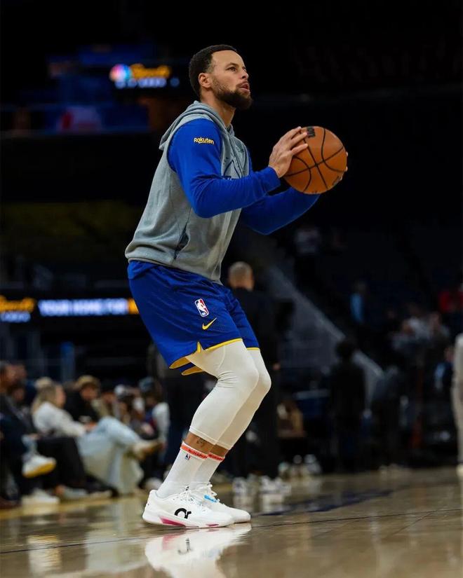 历史上 NBA 也不乏 “乱穿鞋” 的球星,但库里这波把网球鞋穿进热身,确实算是开眼了……