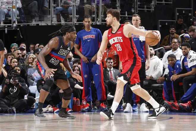 北京时间1月24日,NBA常规赛火箭客场对阵活塞,其中火箭是背靠背第二场,坎宁安迎来复出。双方上半场维持52-52,杜兰特引领火箭下半场逐步扩大14分优势,活塞持续反扑一度追到仅差3分,火箭最后阶段重新扩大两位数领先优势,最终火箭111-104战胜活塞巩固西部第四,活塞终结4连胜。