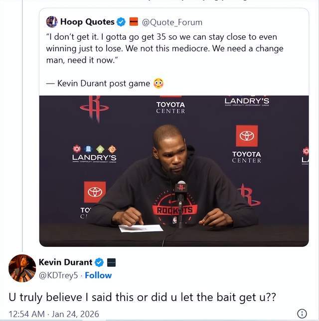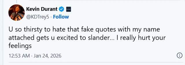 杜兰特回应虚假言论:你相信这话是我说的还是单纯掉进别人圈套