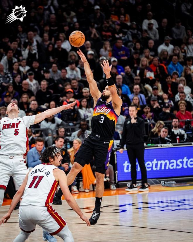 布克格林缺阵,热火双杀太阳!阿德巴约22分7板,狄龙空砍26分