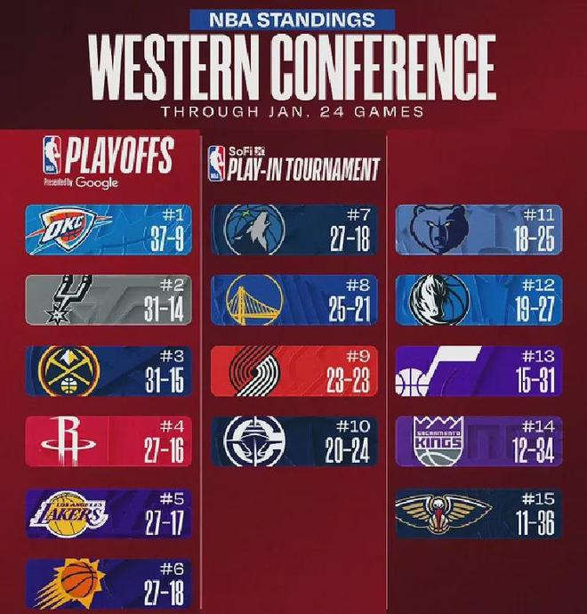 本赛季至今,火箭以27胜16负排名西部第四,仅领先第七的森林狼1个胜场,在此期间球队场均助攻数24.9次位列联盟第25名,场均回合数96.8联盟倒数第四。