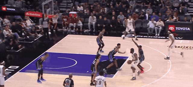 第四节加雷特变了招,蹲守篮下护筐,靠基昂的猛犬追缠,解决了国王的抛射。这是骑士第四节逆转的根基。