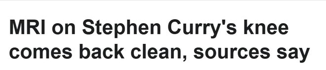 球队官方将其诊断为髌股关节疼痛综合征,也就是俗称的“跑步膝”。库里将缺席今日对阵波士顿凯尔特人的比赛,10天后复查,至少再缺席5场比赛。算上此前缺席的场数,这也意味着库里将无缘评奖。