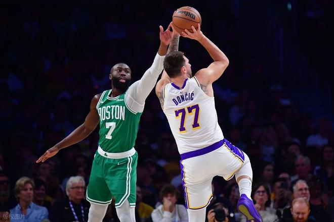 第四节初段湖人追分,又是他挺身而出连砍6分稳定局面,随后和杰伦-布朗联手打爆湖人。