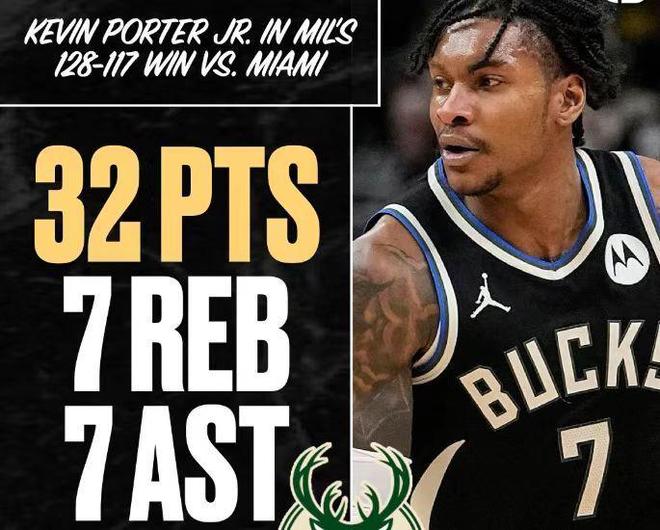 雄鹿灭热火9战7胜:波特32+7+7近15年队史唯二后卫鲍威尔26分