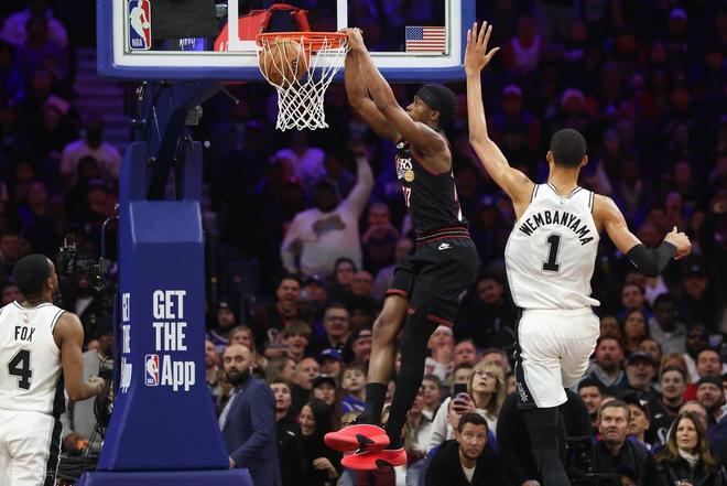 40分惨败马刺,76人脸都丢尽了!文班汗都没出,探花被榜眼完爆