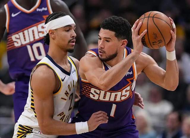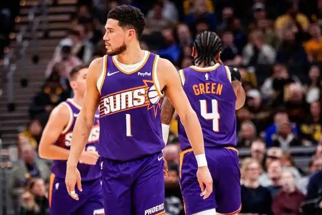 然后在战术地位上,奥特也给了格林最高的球权占比,他甚至比布克还高。今天奥特的信任也得到回报,格林过去4场比赛场均28分。今天面对步行者,出战34分钟,得到36分3篮板4助攻3抢断效率拉满了。再加上格林身边有布克这个领袖在,布克今天得到43分7篮板5助攻1抢断1封盖。布克的存在自带吸力,可以帮助格林进攻端更轻松。
