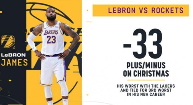 这不仅是他对阵杜兰特生涯的正负值新低,同时也是加盟湖人以来,正负值最低的一场。
