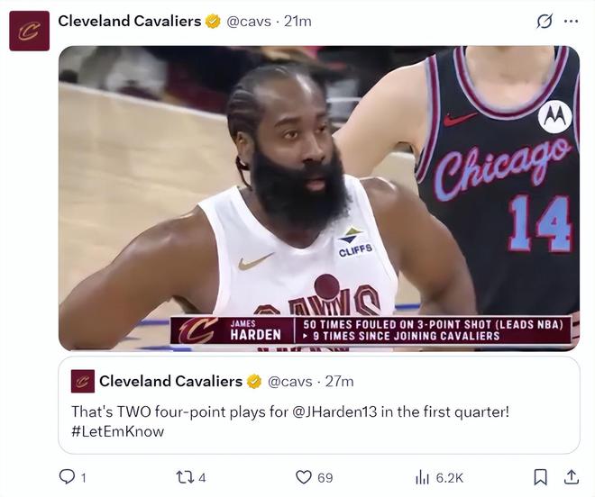 赛后骑士主帅阿特金森谈到此役哈登的表现:可以说是哈登拯救了我们!但我不想总是依赖他一个人,我们知道他的打法,他就是这样的球星,我觉得他身边的人应该打得更好,不能每一次都指望哈登为我们托底。