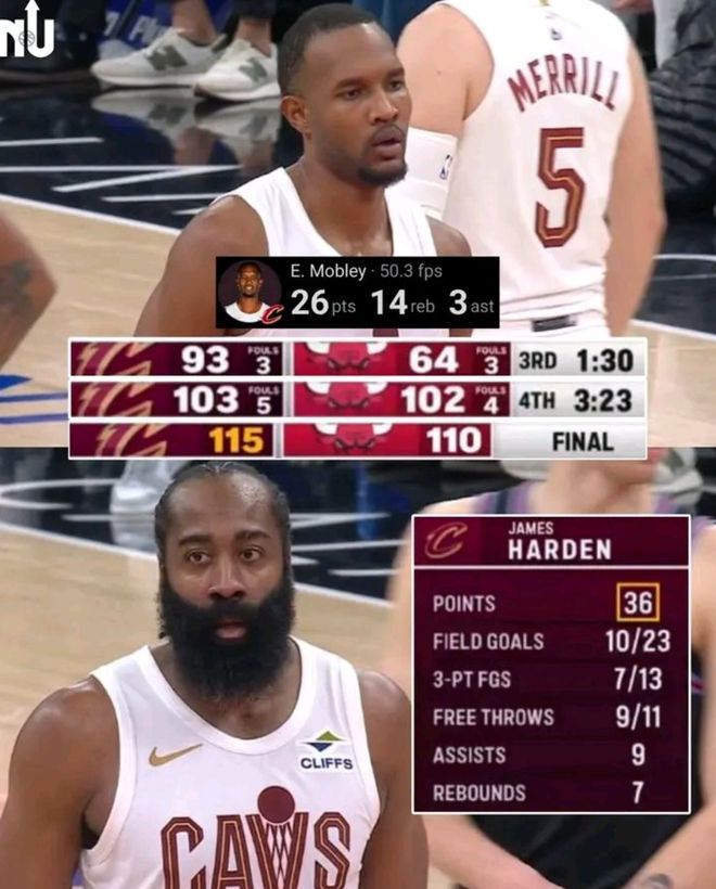 终场前17秒哈登两罚一中继续领先5分,公牛需要两个回合才可能追回来,布泽利斯三分不中,莫布利两罚不中险些沦为罪人,好在只剩下4秒公牛才补篮命中,施罗德两罚命中后骑士已经锁定胜局。