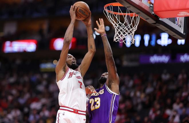 本赛季,KD被太阳队送到火箭队!考虑到火箭队上赛季就取得了西部第2的战绩且与勇士队大战至抢七大战,在很多人看来,KD就是火箭队起飞的助推剂,死神手中尚未生锈的镰刀会成为火箭队崛起之路上的秘密武器。可结果呢?伤病魔咒依然在继续,范乔丹、亚当斯先后赛季报销,火箭队仅以42胜27负排在西部第4位,落后西部第2的马刺队(52胜18负)9.5个胜场。在常规赛还剩13场的情况下,火箭队很难取得比上赛季更好的战绩与排名,你也很难想象火箭队需要做得多么完美才能在一轮系列赛里击败雷霆、马刺、掘金、森林狼、湖人这样的队伍4次!