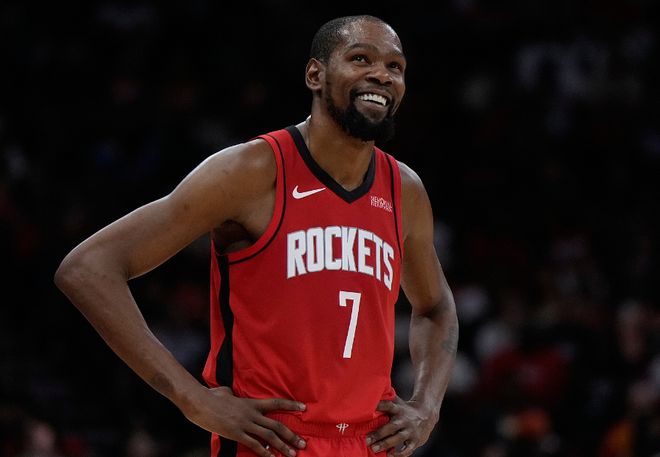 杜兰特17中9砍下27分3板3助,这样的效率已经非常高了,而且生涯总得分超越了乔丹,他依然是火箭进攻端的基本盘,现在来看他打无球的效果是不差的。霍乐迪还是一个惊喜的表现,特别是末节上场之后,他不管是得分、组织和防守的贡献都非常好,他打成了惊喜的角色。