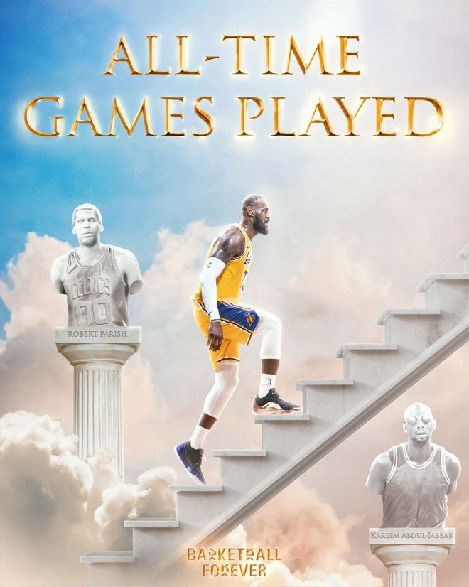NBA官方还晒出勒布朗的一项海报写道:最多赛季、最多登场时间、最多得分、如今勒布朗登场数也是最多,他又为他无与伦比的职业生涯履历增添了一项历史纪录。戴上皇冠。