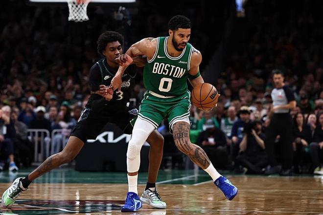 在上赛季的NBA常规赛中,塔图姆总共出场72次,场均出场时间达到了36.4分钟,场均数据为26.8分8.7篮板6助攻1.1抢断0.5盖帽,还有2.9次失误和2.2次犯规,投篮命中率45.2%,三分命中率34.3%,罚球命中率81.4%。到了季后赛,塔图姆总共出场8次,场均出场时间达到了40.2分钟,场均数据为28.1分11.5篮板5.4助攻2.1抢断0.8盖帽,还有3.2次失误和2.6次犯规,投篮命中率42.3%,三分命中率37.2%,罚球命中率88.9%。塔图姆在季后赛期间遭遇了跟腱撕裂重伤,这也导致了他缺席了本赛季之前阶段大量的比赛。塔图姆在最近终于完成了复出,到目前为止他在本赛季总共出场8次,场均出场时间达到了29.8分钟,场均数据为19.1分8.9篮板3.3助攻1.1抢断,还有1.9次失误和1.4次犯规,投篮命中率38.8%,三分命中率29.3%,罚球命中率85.2%。