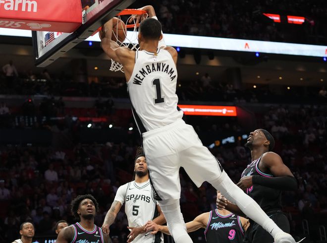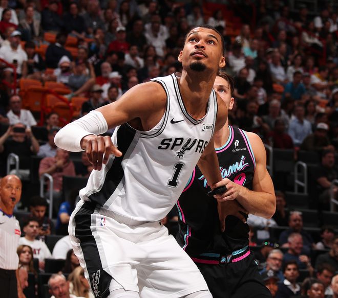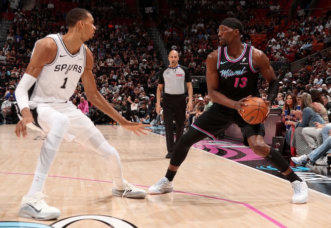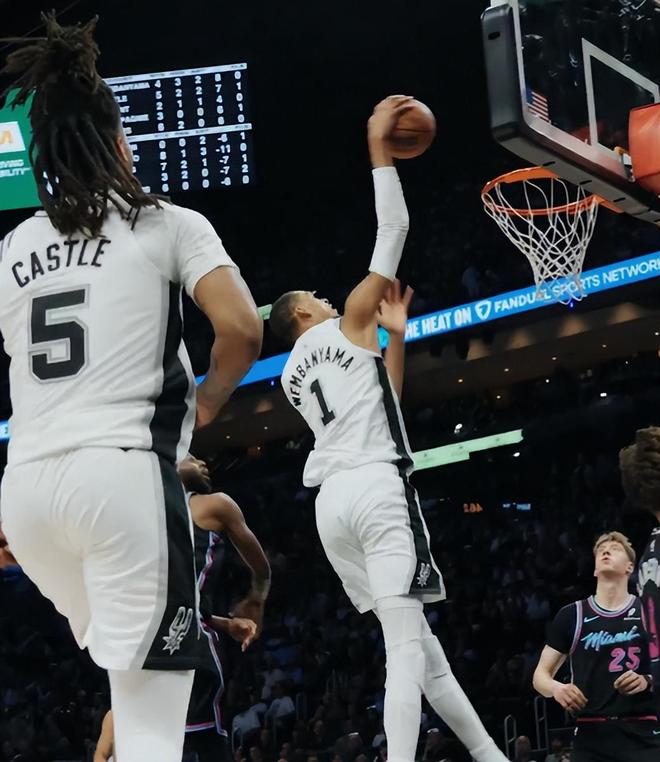 北京时间3月24日,NBA常规赛,马刺136-111大胜热火拿到六连胜。这场比赛是文班亚马VS83分先生阿德巴约的大戏,很明显文班亚马跟阿德巴约的层次都不同,迎面大帽热巴、在热巴的注视下空接,文班亚马是吊打83分先生让热巴颜面扫地。