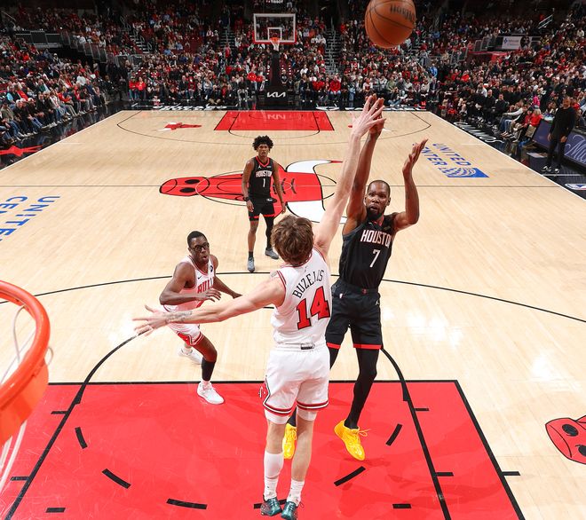 次节火箭在防守端终于开始放弃联防不给公牛轻松外线出手的机会,但火箭的进攻还是很差,杜兰特半场13分3篮板,申京半场12分4篮板,火箭上半场就是依靠这两人苦撑全队。谢泼德、小贾都是疯狂打铁,替补席的伊森、芬尼史密斯都没什么贡献,整个上半场火箭就是梦游的状态。