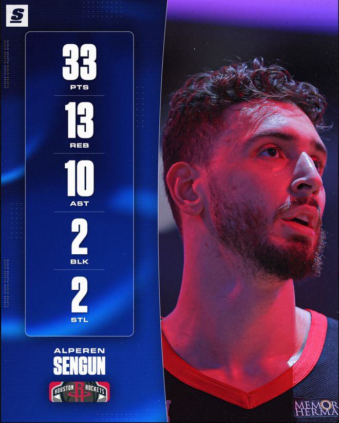 终场前2分59秒申京面对杰伦-史密斯完成了暴扣2+0,申京再一次帮助火箭扳平分差,只可惜随后吉迪、布泽利斯连续命中两个三分,这时候申京已经31+13+9+2+2了。末节申京6中4+三分2中1拿到9分4篮板2助攻,表现已经非常出色。