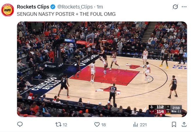 第三节申京更是单节6中6拿到12分6助攻5篮板,休媒:申京此役在球场上所向披靡,他想要什么就有什么。看到他接连打出多场高效的比赛真是太好了。火箭队在一度落后22分的情况下他一人扛着球队,申京正在烹饪公牛!