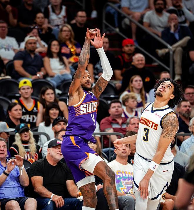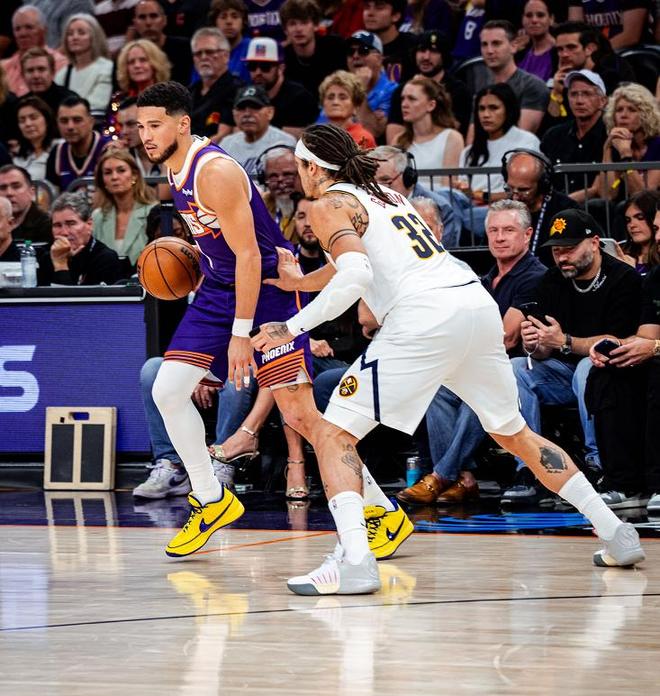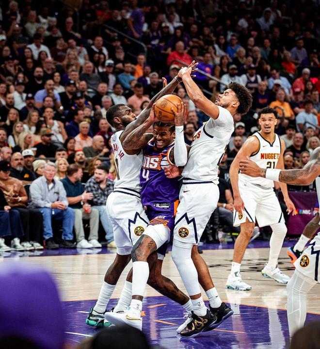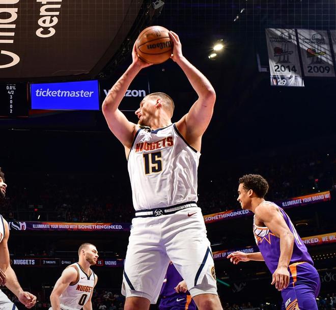 约基奇23+17+17神射4记三分,布克打铁拖后腿,掘金三杀太阳