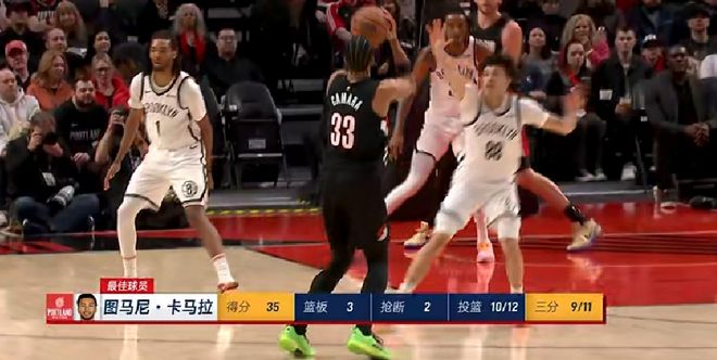 开拓者主场134-99碾压篮网,赢了35分之多,创造球队本赛季最大赢球分差。