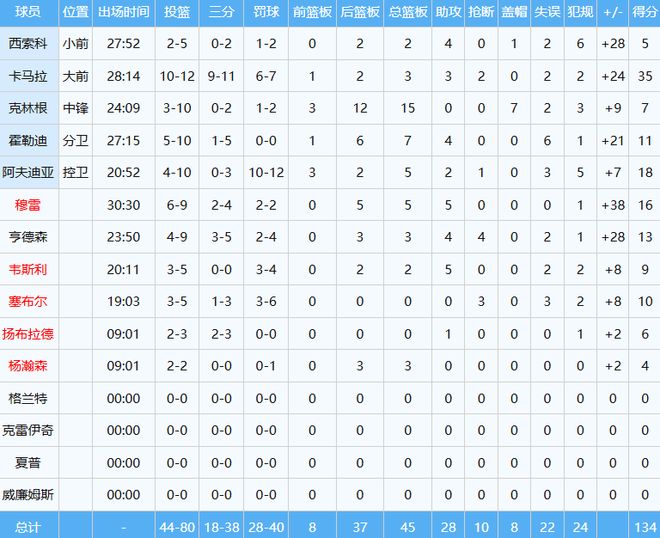 卡马拉绝对是本场的最佳球员,投篮12中10,其中三分11中9(命中率约82%)砍下35分外加3板3助,得分和三分命中数均是个人生涯新高。