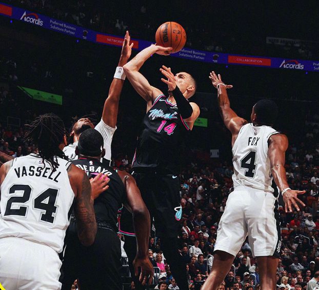 文班亚马26+14+5封盖,阿德巴约怒刷18分,马刺大胜热火24战22胜