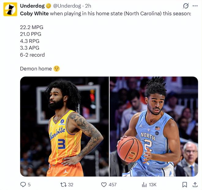 本赛季怀特在自己的家乡北卡罗莱纳州场均能拿到222分钟,拿到21分4.3篮板3.3助攻,他拿到6胜2负的战绩。