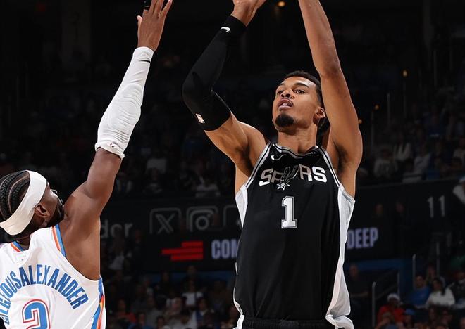 NBA官网记者格兰特-休斯认为马刺是雷霆本赛季卫冕的最大威胁,战绩层面上,马刺目前拥有NBA本赛季对阵雷霆的最佳战绩,5次交手中,马刺赢了4场,文班亚马本赛季与雷霆的交手中场均仅出战25.1分钟的情况下就能拿到18.4分9.2篮板1.2封盖,同时交出了52.4%投篮命中率,62.5%三分命中率这样的成绩单。
