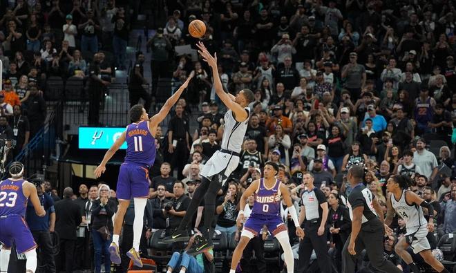 文班亚马如此冷静、如此自信的表现,让人仿佛看到当年巅峰邓肯在关键时刻的从容。整场比赛,太阳其实打得非常顽强,双方你来我往,火药味十足。上半场,杰伦格林手感火热,开局11投6中,一度帮助太阳建立优势。布克虽然手感冰冷,但吉莱斯皮和伊戈达罗及时站出来,联手砍分,半场结束时太阳以59比52领先7分。下半场,马刺一度完成反超,但布克找回状态后,太阳又重新掌握主动,第四节最多领先10分。眼看胜利在望,马刺却在关键时刻爆发。福克斯如同打开了开关,先是一记三分点燃斗志,随后连续得分、造犯规、助攻队友,将分差一点点抹平。最终,文班亚马用那记压哨绝杀锁定了胜局。