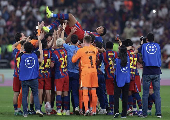 北京时间1月12日,西班牙超级杯决赛,巴塞罗那3-2皇家马德里,夺得冠军。在本场比赛中,此前因心理问题缺席的阿劳霍回归,比赛结束后,他被队友高高抛起庆祝,并举起了冠军奖杯。