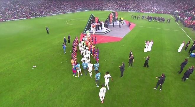 在北京时间1月12日结束的西班牙超级杯决赛中,皇马2-3不敌巴萨,无缘夺冠。而赛后,皇马球员在颁奖仪式上的行为也引发争议,因为他们似乎并没有按照常规流程为巴萨列队。