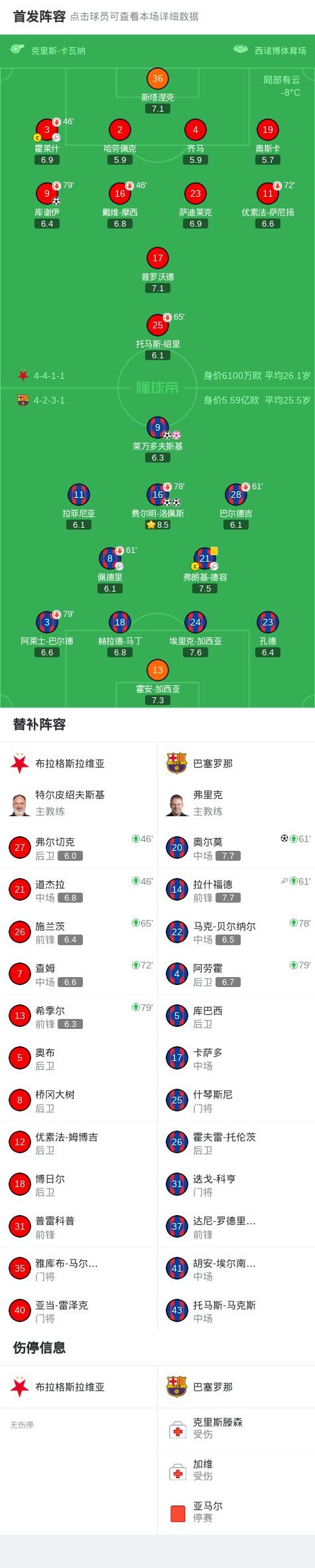 第61分钟,佩德里受伤被奥尔莫换下,拉什福德替补巴尔德吉上场