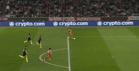 直到半场伤停补时阶段,索博斯洛伊任意球直接破门,此球极像当年罗纳尔迪尼奥破门的经典时刻,同样也是门将准备不足,利物浦1-0打破僵局。