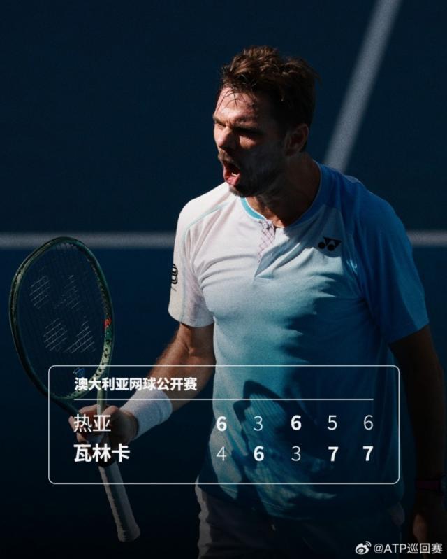 1月22报道 2026澳网男单第二轮,40岁的瓦林卡,鏖战四个半小时,打满五盘抢十险胜热亚。本场比赛中,持外卡出战的2014年赛会冠军瓦林卡战至决胜盘抢十,以4-6、6-3、3-6、7-5、7-6(10-3)击败法国资格赛球员热亚,成功挺进32强!