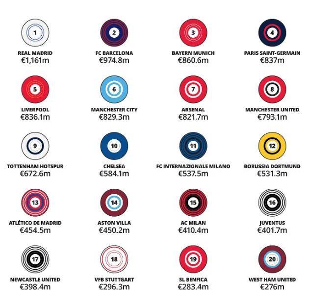 国际会计事务所德勤发布24/25赛季足球俱乐部收入报告。