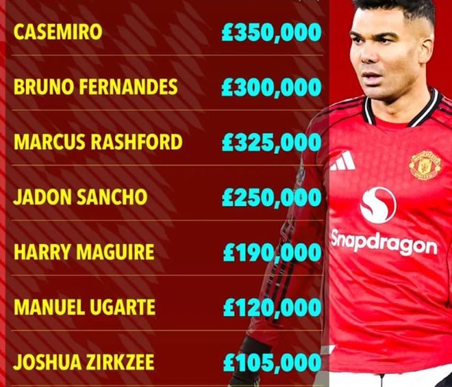 一旦清理了卡塞米罗和拉什福德,曼联唯一周薪达到30万英镑的球员只有队长布鲁诺·费尔南德斯,31岁的葡萄牙中场也可能在未来一两年离队,届时老特拉福德便没有如此高薪的球员了。俱乐部最近引进新援时,都拒绝给出超过20万英镑的周薪。