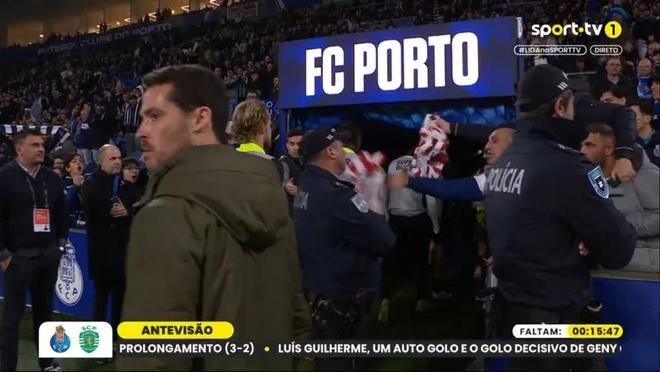 在刚结束的葡超第21轮比赛中,葡萄牙体育客场1-1战平波尔图。据网传视频显示,本场比赛葡体球员在波尔图巨龙球场完成赛前热身后,正准备返回更衣室休息。就在此时,一名坐在靠近更衣室通道的波尔图球迷将一件马德里竞技球衣直接扔向了球队队长尤尔曼德的脸,引发了现场一阵骚动。